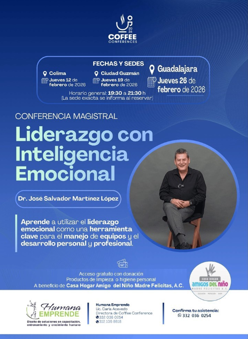 Las Coffee Conferences son un programa de conferencias magistrales mensuales organizado por Humana Emprende, diseñado para empresarios, emprendedores, líderes y profesionales que buscan fortalecer su liderazgo, crecimiento personal y desarrollo empresarial. Actualmente se encuentran en su Sexta Temporada 2026, consolidándose como uno de los espacios de formación y networking más importantes en Colima, Ciudad Guzmán y Guadalajara.